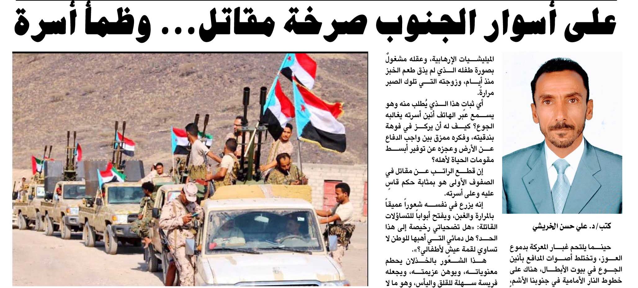 فالمقاتل الذي يئن تحت وطأة الفقر، قد لا يصمد طويلاً أمام إغراءات الفوضى أو دعوات التطرف. إن تجفيف منابع قوة هؤلاء الأبطال هو بمثابة خدمة مجانية تقدم لأعداء التحالف العربي والشرعية.