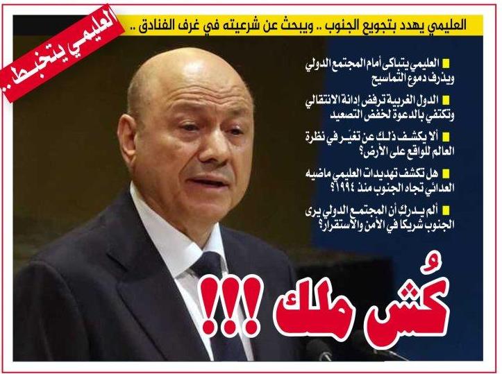 العليمي يهدد بتجويع الجنوب .. ويبحث عن شرعيته في غرف الفنادق ..