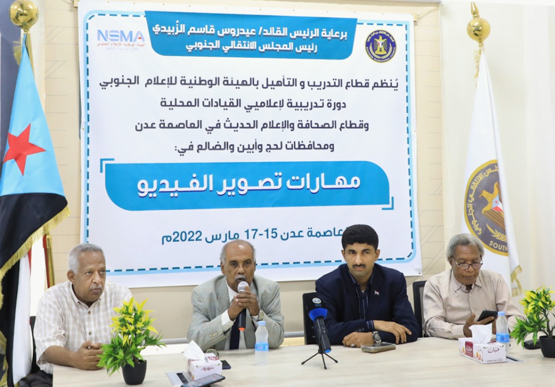 دشَّنَ قطاع التدريب والتأهيل بالهيئة الوطنية للإعلام الجنوبي الدورة التدريبية "مهارات تصوير الفيديو" برعاية كريمة من الرئيس القائد عيدروس قاسم الزُبيدي رئيس المجلس الانتقالي الجنوبي، اليوم الثلاثاء، في العاصمة عدن، لإعلاميي القيادات المحلية وقطاع الصحافة والإعلام الحديث بالعاصمة ومحافظات "لحج وأبين والضالع".