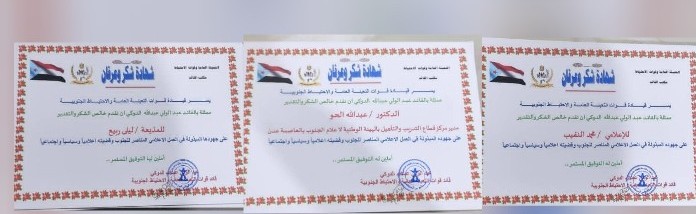 وجاءت خطوة التكريم للدكاترة والناشطين والإعلاميين الجنوبيين. عرفاناً لنشاطهم الإعلامي تجاه قضية الجنوب وشعبه.