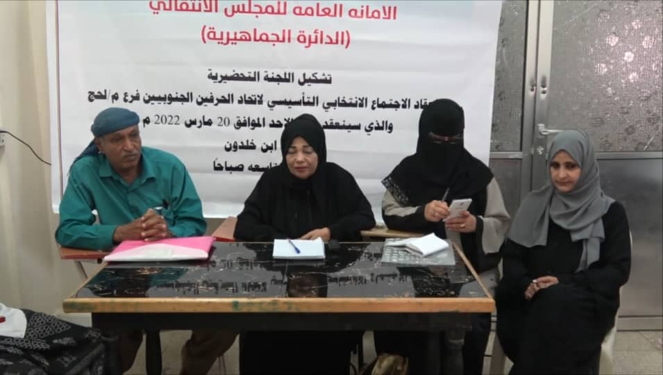 برعاية الرئيس عيدروس الزبيدي رئيس المجلس الانتقالي الجنوبي وبإشراف الدائرة الجماهيرية للأمانة العامة للانتقالي شهدت صباح اليوم الأحد 20 مارس 2022م، قاعة ابن خلدون بمدينة الحوطة بمحافظة لحج ، انعقاد تشكيل اللجنة التحضيرية لاتحاد الحرفيين الجنوبيين فرع محافظة لحج.