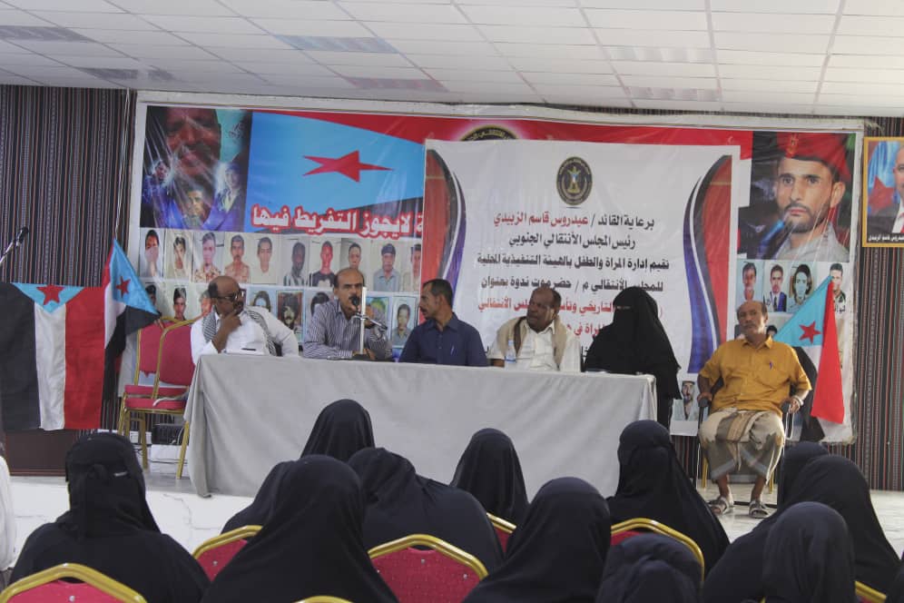 نظمت إدارة المرأة والطفل بالهيئة التنفيذية للقيادة المحلية للمجلس الانتقالي الجنوبي بمحافظة حضرموت ندوة بعنوان إعلان عدن التاريخي وتأسيس المجلس الانتقالي الجنوبي ودور المرأة في هيئات المجلس .