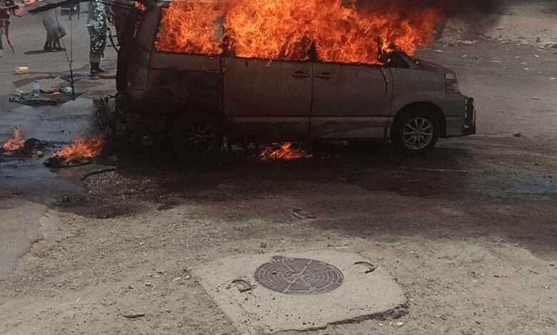احترقت ظهر اليوم السبت سيارة بائع وقود سوق سوداء بمدينة زنجبار بمحافظة أبين, دون ان تخلف اضرار بشرية.
