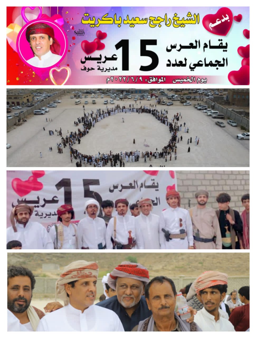 أُقيم يوم الخميس، بمديرية حوف بمحافظة المهرة، عرساً جماعياً لـ15 عريس من أبناء المديرية.