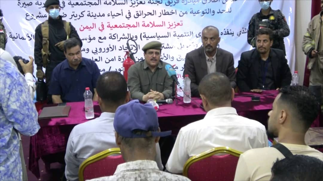 اختتمت ظهر اليوم في مديرية صيرة الدروة التدريبية الثانية الخاصة بالحد والتوعية من اخطار الحرائق وذلك ضمن مشروع تعزيز السلامة المجتمعية في اليمن الذي ينفذه منتدى التنمية السياسية بالشراكة مع مؤسسة بيرجهوف الألمانية بدعم وتمويل مشترك من الاتحاد الأوروبي ومملكة هولندا وبتنسيق وإشراف من إدارة أمن العاصمة عدن وبرعاية مدير عام مديرية صيرة الدكتور محمود بن جرادي.