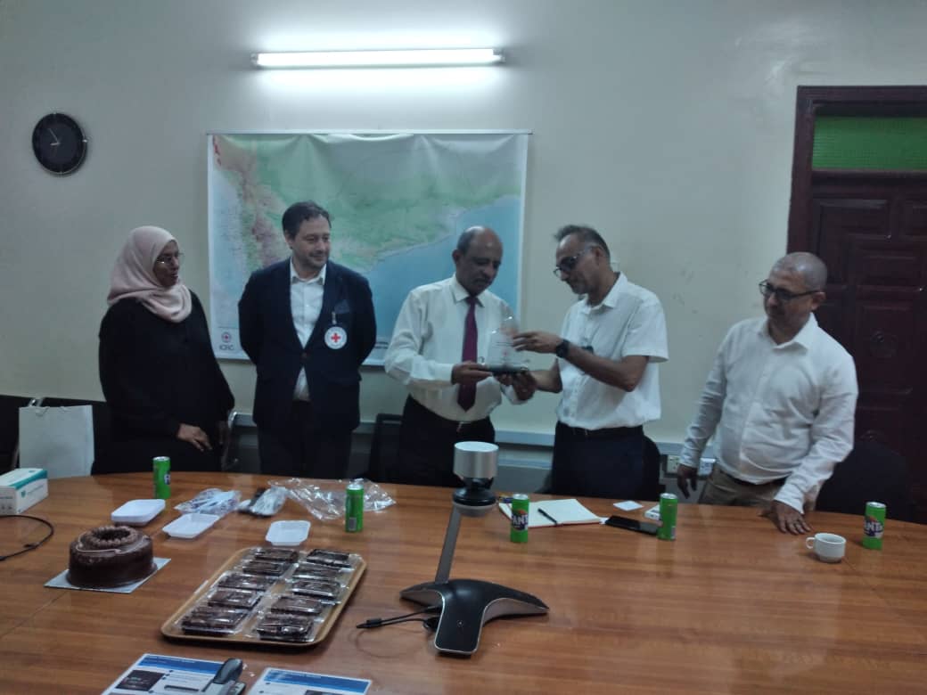 كرمت هيئة مستشفى الجمهورية النموذجي العام عدن اللجنة الدولية للصليب الأحمر بدرع الشكر والعرفان نظير دعمهم لمرضى الفشل الكلوي بالمستشفى.