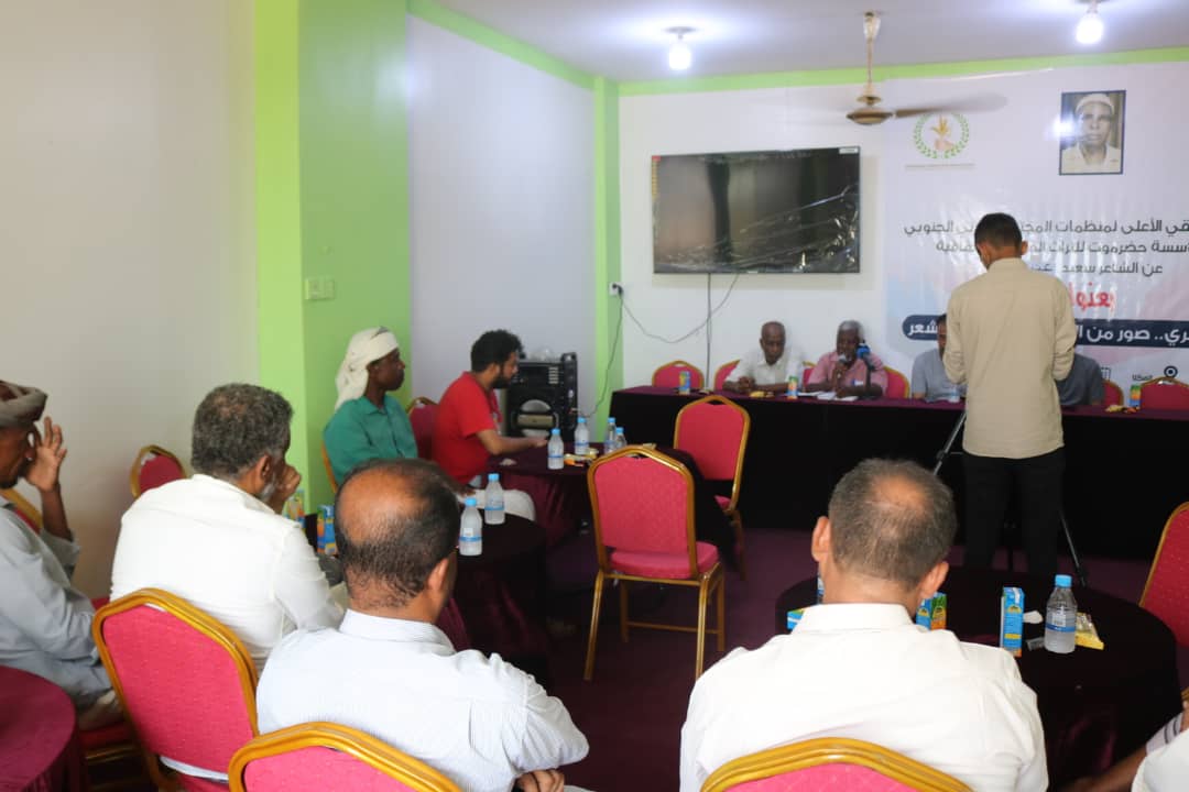 أقامت مؤسسة حضرموت للتراث الفني، صباح اليوم الأربعاء، ندوة ثقافية عن الشاعر الشعبي سعيد عنبر فرج عنبر، تحت عنوان: