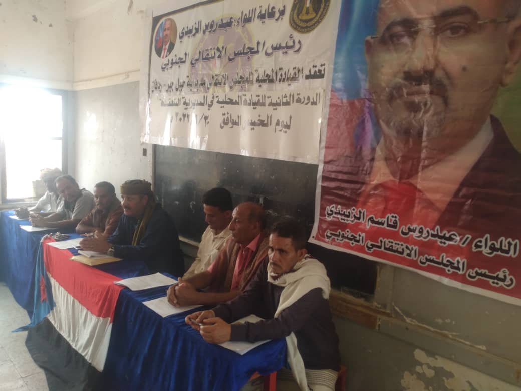 عقدت القيادة المحلية للمجلس الانتقالي الجنوبي مديرية حبيل جبر ردفان بمحافظة لحج صباح اليوم الخميس اجتماعها الدوري للفصل الثاني للعام ٢٠٢٢م برئاسة العقيد عبدالحميد علي سالم السيد القائم بأعمال رئيس الهيئة التنفيذية .