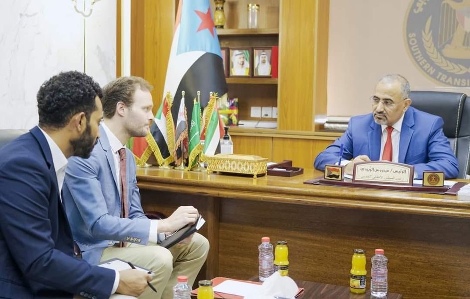 استقبل الرئيس القائد عيدروس قاسم الزبيدي رئيس المجلس الانتقالي الجنوبي، نائب رئيس مجلس القيادة الرئاسي، اليوم السبت، في مقر المجلس بالعاصمة عدن، وفدا من المعهد الأوروبي للسلام برئاسة مدير البرامج في المعهد جيمي بليديل، والمستشار الإقليمي المختص بملف اليمن في المعهد وثانوس بيتوريس.