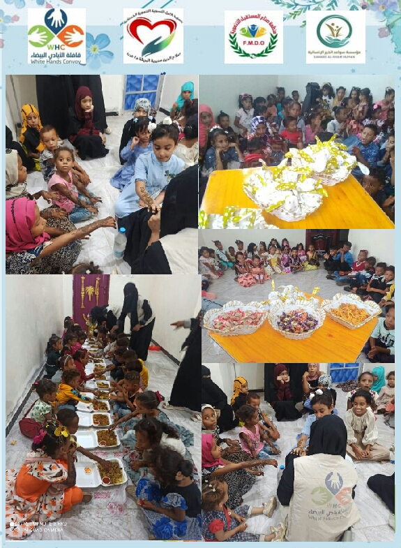 نفذت قافلة الأيادي البيضاء في مديرية البريقة - عدن. وتحت شعار "بأيدينا نبني سعادتنا" فعالية مبادرة فرحة أمل للمرة الثانية للايتام والأسر المتعففة. ضمن مشاريع الحماية ودعم سبل العيش للتمكين الاقتصادي للنساء والفتيات من الأسر المستضعفة والمتعففة والأيتام برعاية مؤسسة سواعد الخير الإنسانية ومنظمة صناع المستقبل التنموية، وجمعية الأمل النسوية التنموية