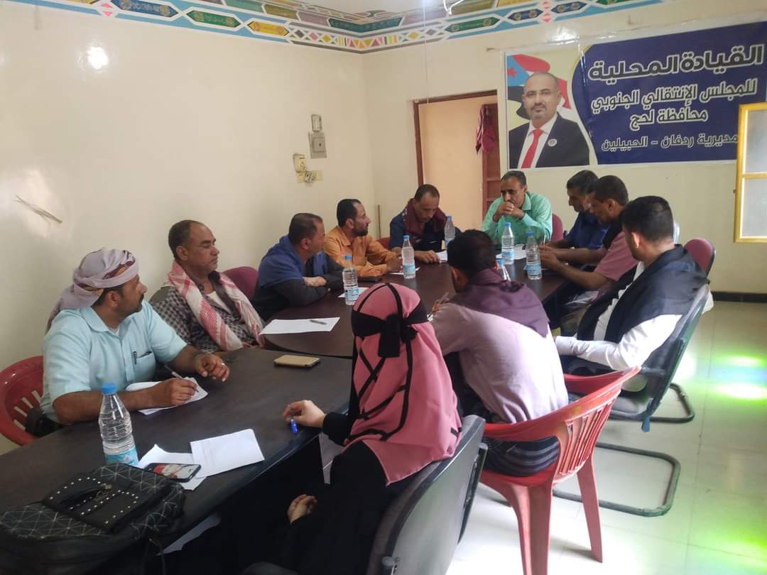 عقدت الهيئة التنفيذية للمجلس الانتقالي بمديرية ردفان الحبيلين اجتماعها الثاني لشهر يوليو، برئاسة رئيس الهيئة التنفيذية للمجلس الاستاذ محمود عبدالكريم، الذي استهل الاجتماع بكلمة توجيهية رحب من خلالها بالقائم باعمال مدير مؤسسة المياه في المديرية، ومشيدا بدوره الايجابي في تسوية عمل المؤسسة، ومحاولاته انتشال وضعها المتردي، وتحسين خدماتها ، كما تطرق رئيس الهيئة إلى كثير من القضايا المتعلقة بالشأن السياسي ،وكذا بالهيكلة الادارية التي ستنفذ في اطار ادارات المجلس الانتقالي .