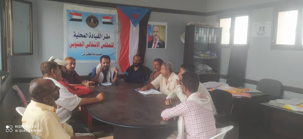 عقدت تنفيذية إنتقالي مديرية كرش إجتماعها الدوري لشهر أغسطس اليوم الأربعا برئاسة الاستاذ هارون مقبل الصُّمّه الحُميدي رئيس الهيئة التنفيذية