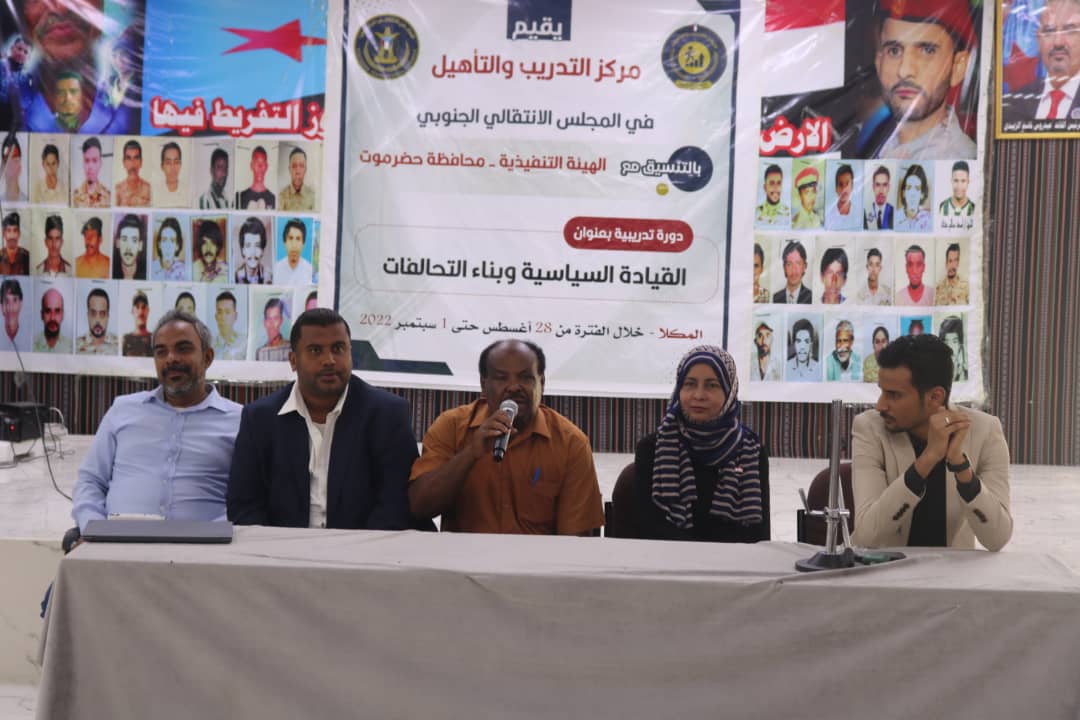 وعبرت الدكتورة منى عوض باشراحيل، عضو هيئة رئاسة المجلس الانتقالي الجنوبي، المشرف العام على التدريب في المجلس، رئيس المركز، أثناء تدشينها للدورة التدريبية في مجال القيادة السياسية وبناء التحالفات، عن سعادتها بالتفاعل الكبير، مع البرنامج التدريبي المنوع، الذي استهل بدورة تدريبية في بناء السلام وثقافة الحوار .