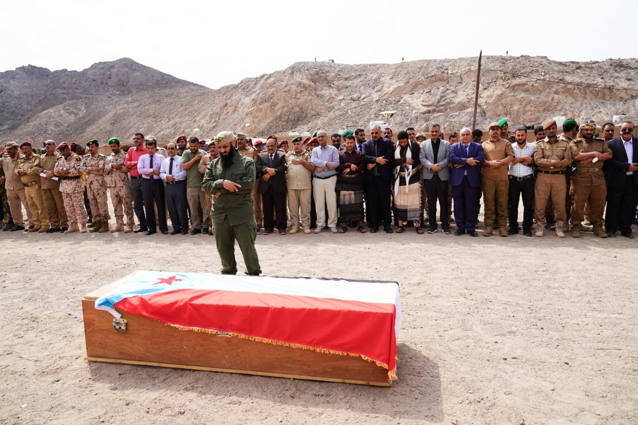 وأدّى الرئيس القائد صلاة الجنازة، على جثمان الشهيد بمعية اللواء أحمد سعيد بن بريك رئيس الجمعية الوطنية، والأمين العامة لهيئة رئاسة المجلس، ووزير الدولة، محافظ العاصمة عدن أحمد حامد لملس، ونائب الأمين فضل محمد الجعدي، وعدد من أعضاء هيئة رئاسة المجلس، ووزراء المجلس في حكومة المناصفة، واللواء علي البيشي قائد القوات البرية الجنوبية، وعدد من القيادات العسكرية والأمنية الجنوبية، وجمع من المسؤولين الحكوميين، ورؤساء دوائر ولجان المجلس.