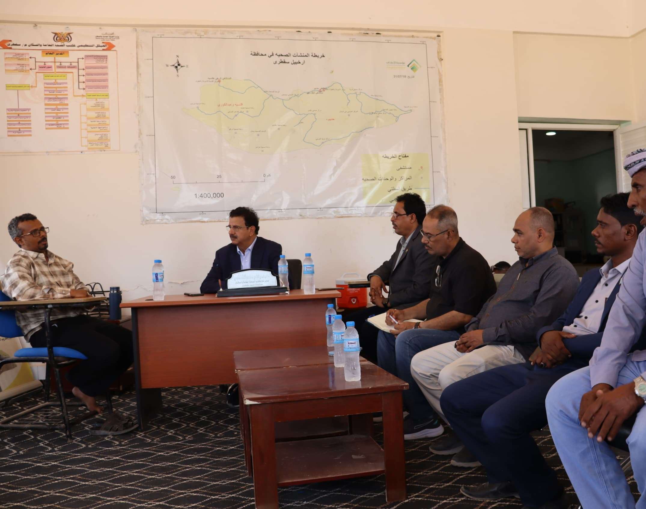 وخلال الزيارة التي رافقهم فيها رئيس تنفيذية انتقالي سقطرى، سعيد عمر بن قبلان، استمع الفريق من مدير عام مكتب الصحة العامة والسكان، الدكتور عيسى الشنقبي، إلى شرح مفصل عن مستوى تنفيذ البرامج الصحية، وجهود المكتب في تحسين أداء المرافق الصحية بالمحافظة، والمشاريع والشراكات القائمة مع الجهات الداعمة والمنظمات الدولية العاملة في المجال الصحي.