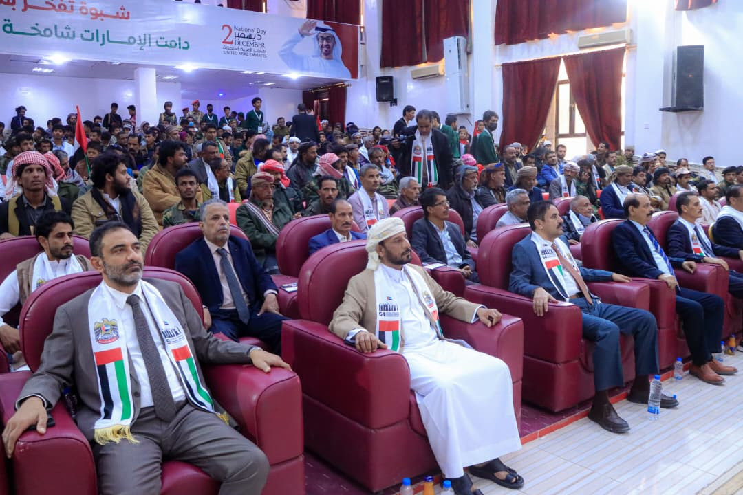 كما ألقى الشيخ محسن بن صالح القديمة كلمة بالنيابة عن أبناء المحافظة، عبّر فيها عن اعتزازهم بهذه المناسبة الوطنية، مقدماً شكرهم لدولة الإمارات على دعمها المستمر لشبوة في مختلف الجوانب الخدمية والإنسانية، وما لذلك من دور مباشر في تحسين الحياة اليومية وتعزيز التنمية.