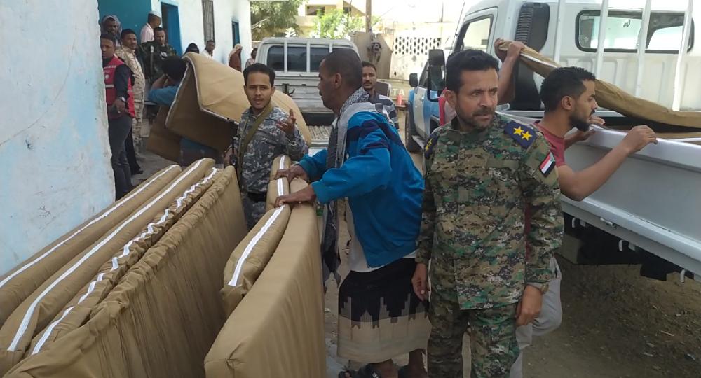 وتكونت المواد التي قدمها الهلال لادارة امن الحوطة من بطانيات وفرشان ومواد تنظيف ومعقمات وحصير .
