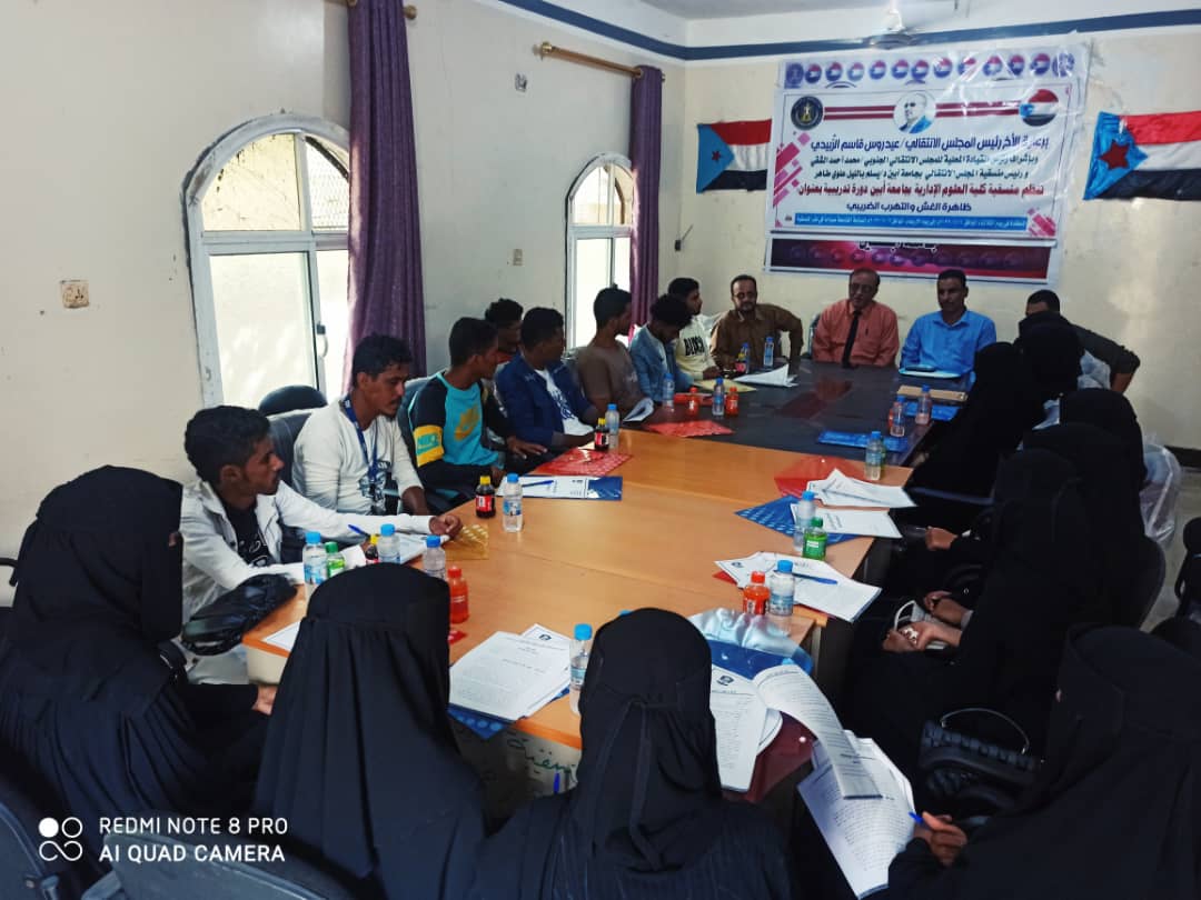 برعاية كريمة من الرئيس عيدروس قاسم الزبيدي رئيس المجلس الانتقالي الجنوبي نائب رئيس مجلس القيادة الرئاسي، وإشراف الأستاذ محمد أحمد الشقي رئيس الهيئة التنفيذية للقيادة المحلية بالمجلس الانتقالي الجنوبي بمحافظة أبين، والدكتور يسلم بالليل رئيس منسقية انتقالي جامعة أبين دشنت منسقية كلية العلوم الإدارية بجامعة أبين صباح يومنا هذا الثلاثاء الموافق 2022/11/1م. بقاعة المنسقية بالعاصمة زنجبار دورة تدريبية بعنوان: ظاهرة الغش والتهرب الضريبي لـ 33 مشاركا من طلبة كلية العلوم الإدارية/ بجامعة أبين، تحت إدارة وإشراف رئيس منسقية كلية العلوم الإدارية الدكتور رشيد الرهوي.