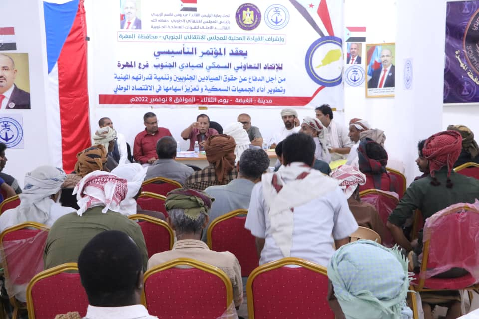 عقد، اليوم الثلاثاء، المؤتمر التأسيسي لفرع الاتحاد التعاوني السمكي لصيادي الجنوب في محافظة المهرة تحت شعار "من أجل الدفاع عن حقوق الصيادين الجنوبيين وتنمية قدراتهم المهنية وتطوير أداء الجمعيات السمكية وتعزيز اسهامها في الاقتصاد الوطني"، برعاية الرئيس القائد عيدروس الزُبيدي رئيس المجلس الانتقالي الجنوبي.