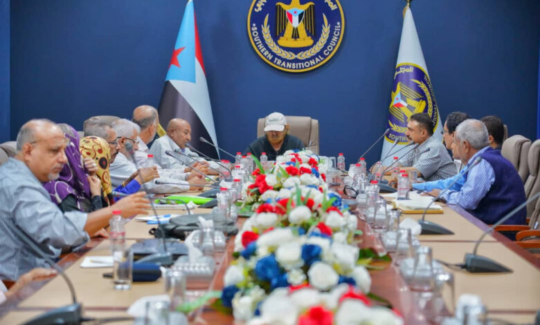 وتناول الاجتماع جملة من الملفات المرتبطة بالأوضاع الاقتصادية وأهمها الآثار الاقتصادية والاجتماعية للنازحين في العاصمة عدن ومحافظات الجنوب، كما ناقش الاجتماع، عدداً من المشروعات المرتبطة بالبنية التحتية، منها قطاعي الكهرباء والاتصالات والمنطقة الحرة.