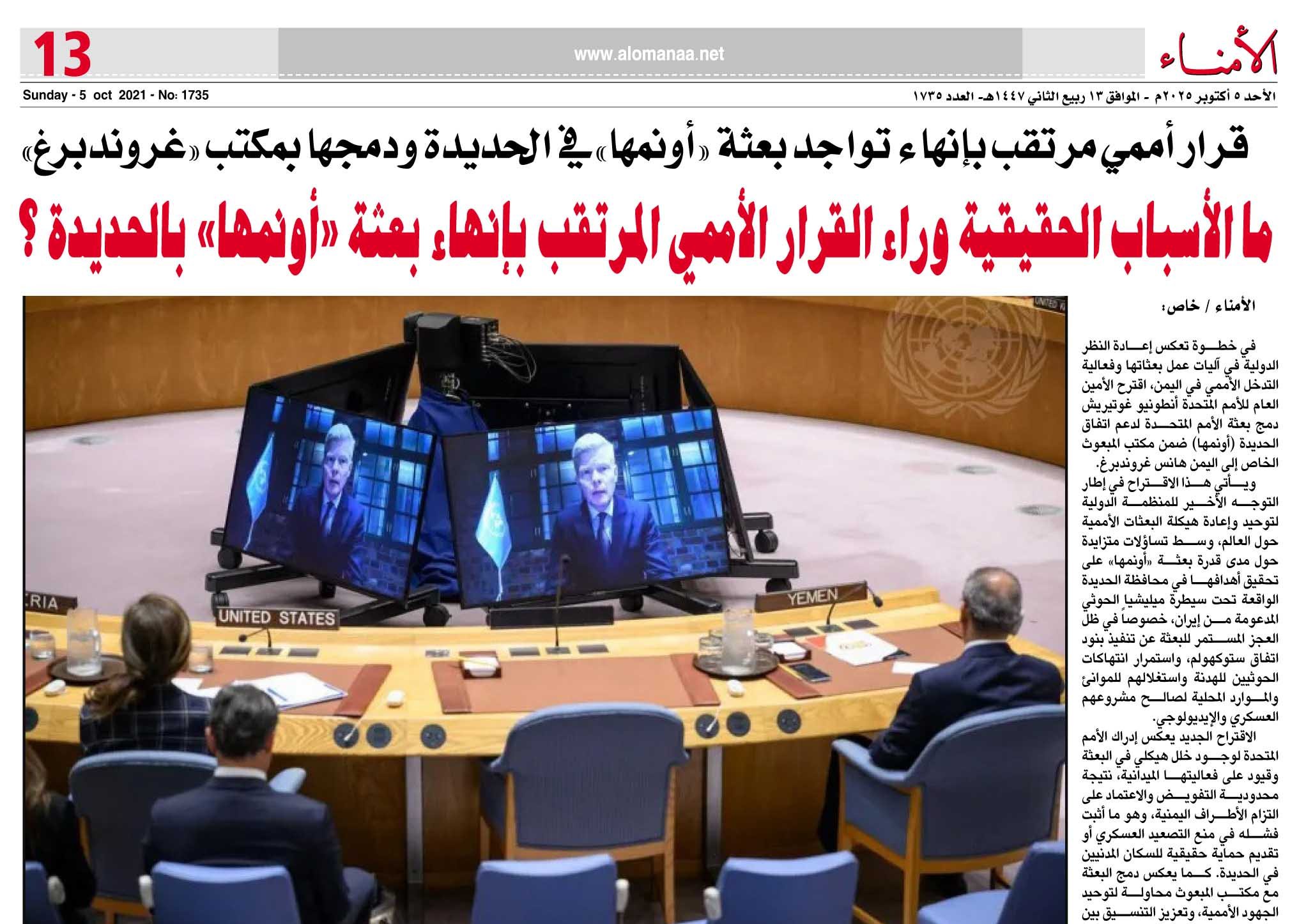 ما الأسباب الحقيقية وراء القرار الأممي المرتقب بإنهاء بعثة "أونمها" بالحديدة ؟