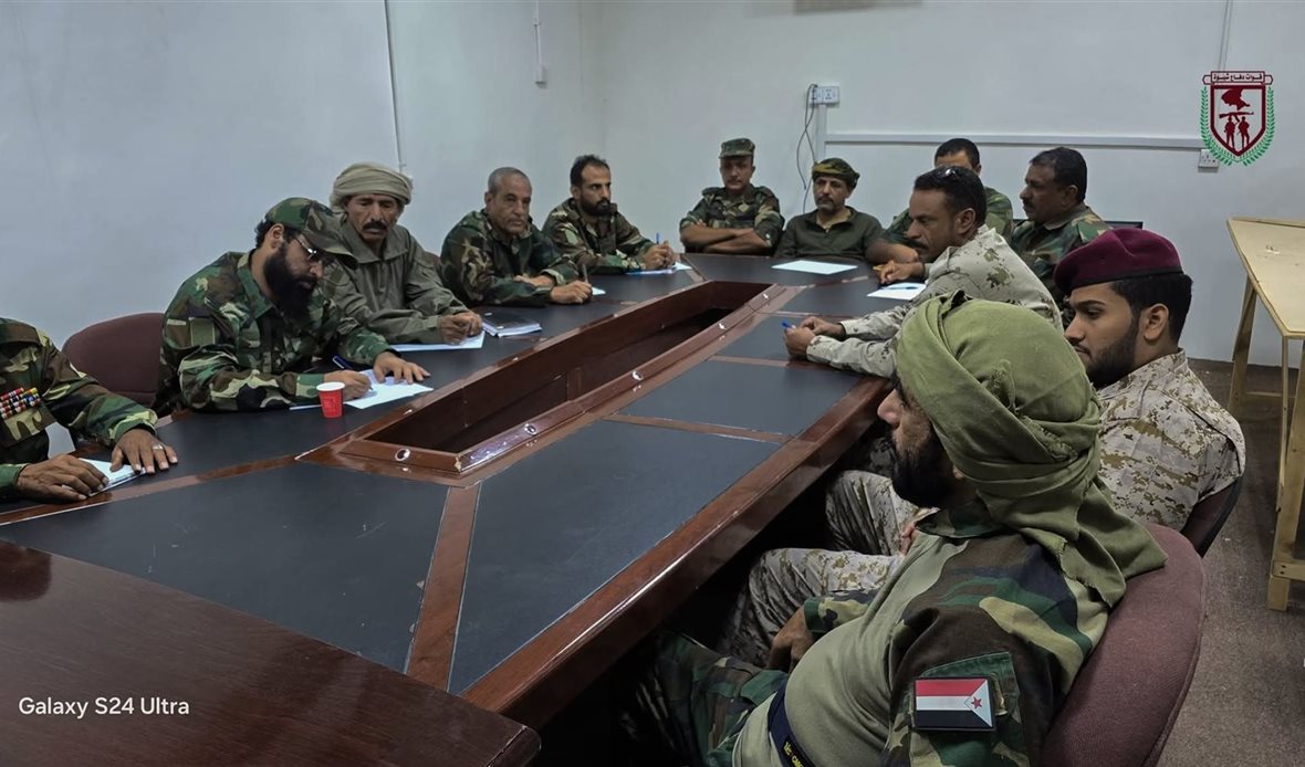 عقد يوم أمس في مقر القيادة العامة لقوات دفاع شبوة اجتماع قيادي برئاسة القائد العام لقوات دفاع شبوة، العميد الركن علي الكليبي، وبحضور نائبه العميد فوزي السعدي، قائد اللواء الثالث، لمناقشة أوضاع الجبهات القتالية وتقييم مستوى الجاهزية للوحدات المرابطة داخل المحافظة وعلى حدودها.