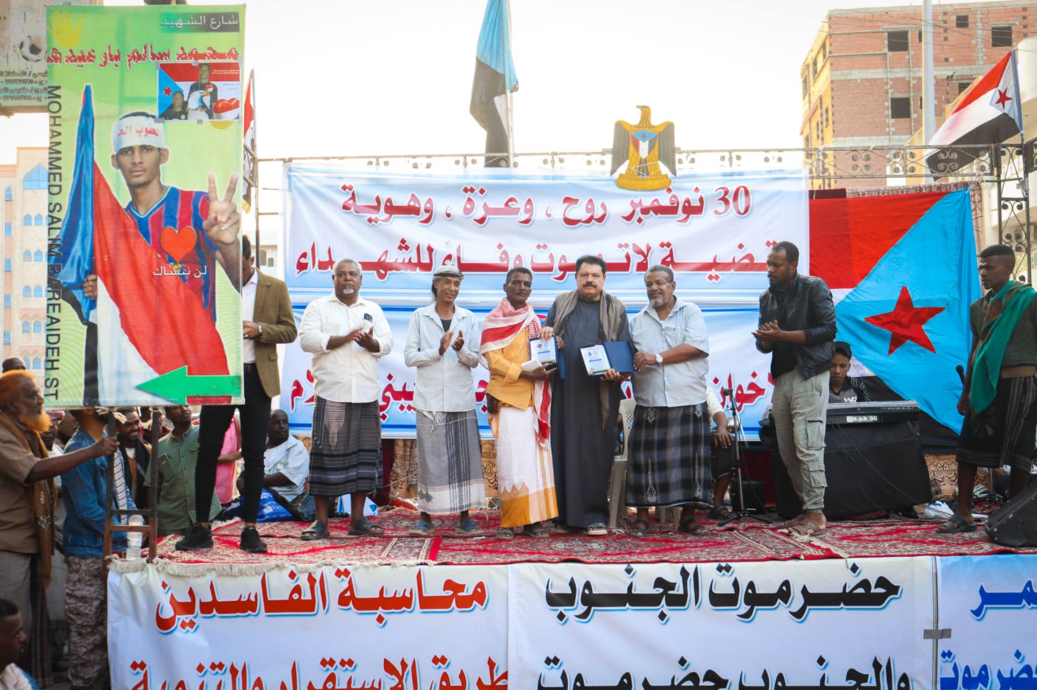 وخلال الفعالية، جرى تكريم عدد من أسر الشهداء وهم: محمد سالم بارعيدة، عيسى بافلح، ورامي باجامع، في لفتة وفاء وعرفان بتضحيات الشهداء الذين قدّموا أرواحهم دفاعًا عن الجنوب وقضيته العادلة.