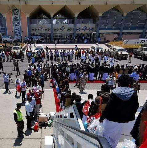 وذكر المركز ، إن 75 أسيراً من المقاومة الجنوبية ومنتسبي القوات المشتركة وصلوا، اليوم، مطار عدن.