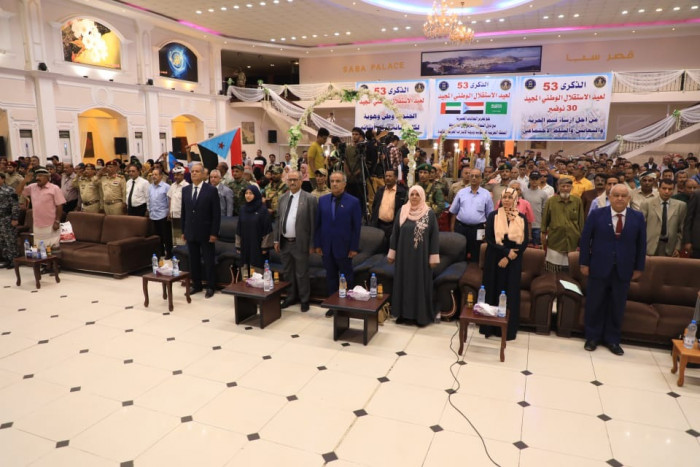 شهدت العاصمة عدن اليوم الاثنين، حفلًا بمناسبة الذكرى الـ53 لعيد الاستقلال في الـ30 من نوفمبر، نظمه المجلس الانتقالي الجنوبي.