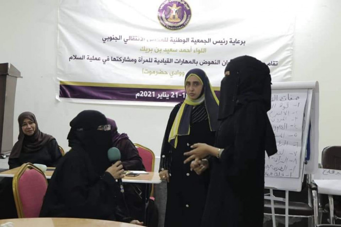 أقيمت في مدينة المكلا، اليوم الأربعاء، ورشة عمل حول النهوض بالمهارات القيادية للمرأة، وذلك برعاية الجمعية الوطنية بالمجلس الانتقالي الجنوبي.