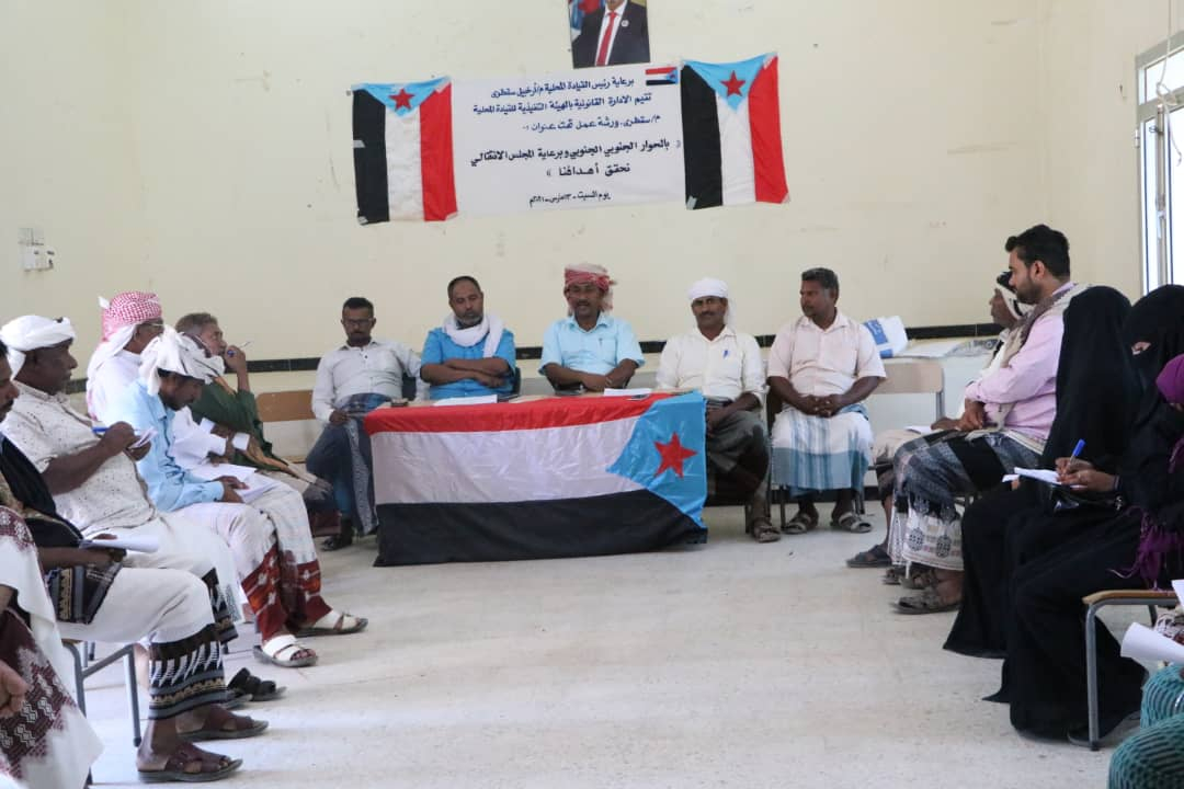 نظمت الإدارة القانونية بالهيئة التنفيذية للقيادة المحلية للمجلس الانتقالي الجنوبي بمحافظة أرخبيل سقطرى، اليوم السبت، ورشة عمل بعنوان "بالحوار الجنوبي - الجنوبي وبرعاية المجلس الانتقالي الجنوبي نحقق أهدافنا".