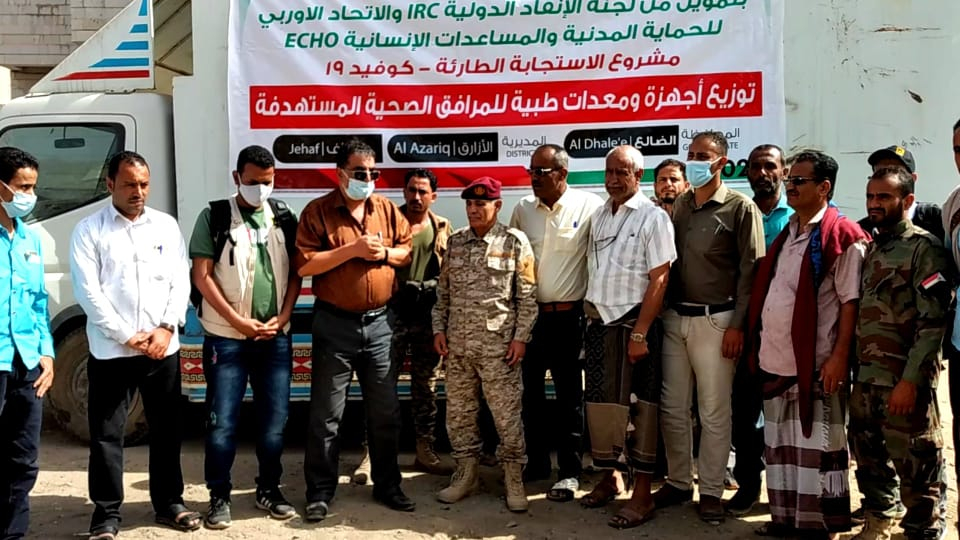 دشن العميد عبدالله مهدي سعيد رئيس الهيئة التنفيذية للقيادة المحلية للمجلس الانتقالي بمحافظة الضالع، اليوم الثلاثاء، تسليم كمية من المعدات والمستلزمات الطبية للمرافق الصحية في مديرتي الأزارق وجحاف، مقدمة من لجنة الانقاذ الدولية "lRC"، ضمن مشروع الاستجابة الطارئة لفيروس كورونا.
