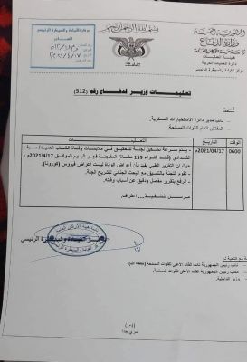 ووجهت وزارة الدفاع بتشكيل لجنة للتنسيق مع البحث الجنائي لتشريح الجثة والرفع بتقرير مفصل ودقيق عن اسباب وفاته.