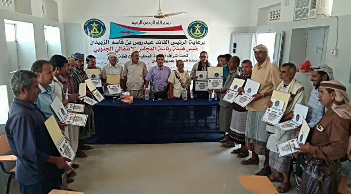 أقامت القيادة المحلية للمجلس الانتقالي الجنوبي بمديرية بيحان بمحافظة شبوة،اليوم الثلاثاء، حفلا تكريميا لكوكبة من معلمي ومعلمات المديرية، برعاية الرئيس القائد عيدروس بن قاسم الزبيدي رئيس المجلس الانتقالي الجنوبي، وإشراف القيادة المحلية للمجلس الانتقالي الجنوبي بالمحافظة.