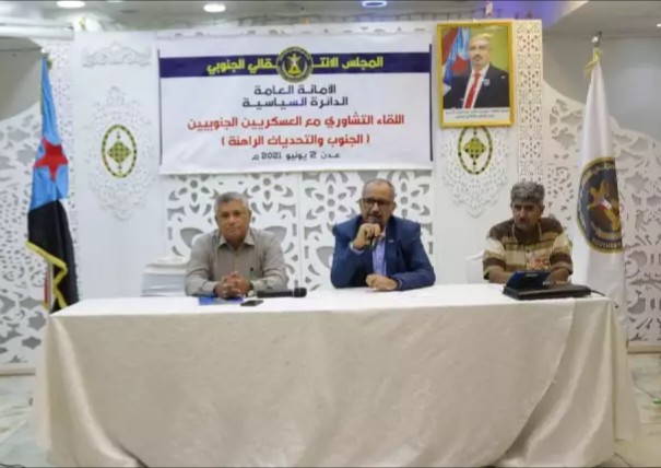 عقدت الدائرة السياسية في الأمانة العامة لهيئة رئاسة المجلس الانتقالي الجنوبي، اليوم الأربعاء في العاصمة عدن، لقاءً تشاورياً مع العسكريين الجنوبيين تحت عنوان "الجنوب والتحديات الراهنة".